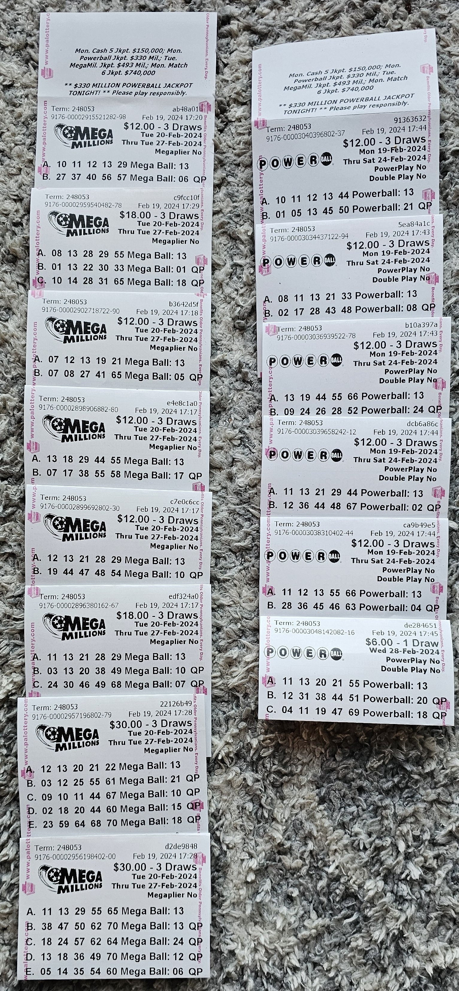 ---POWER BALL DATES PLAYED 2024-02-19 AND 2024-02-28---